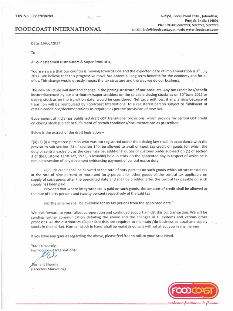 GST Letter PDF Taxes Payments